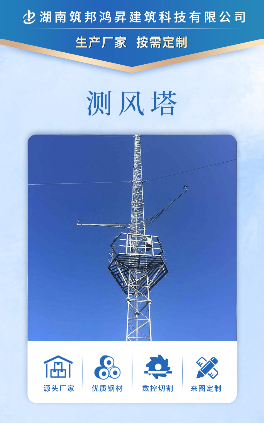 [筑邦鴻昇]測風(fēng)塔等鐵塔采用激光數(shù)控沖切,熱鍍鋅工藝,實(shí)力大廠供貨準(zhǔn)時(shí),服務(wù)周到。